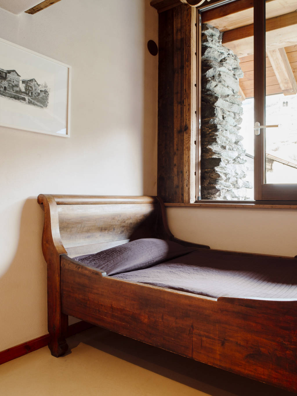 Un accueillant appartement de deux pièces sur deux niveaux, réalisé en bois précieux ancien alternant avec des matériaux modernes, avec des portes en panneaux également anciens, conçu pour accueillir des familles ou des groupes d'amis, avec deux lits simples dans le séjour et un lit double dans la mezzanine, équipé d'une salle de bain privée, d'un sèche-cheveux, d'une télévision, d'une cuisine avec réfrigérateur et ustensiles de cuisine, de couvertures et de couvre-lits et du wifi gratuit.