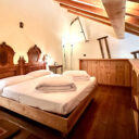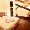 Tous nos appartements sont mansardés et disposent de deux pièces (duplex) installées sur deux niveaux. Ils ont été réalisés également avec des matériaux anciens de grande valeur ainsi qu’avec des matériaux modernes. Les portes aussi ont été créées avec des tableaux anciens. Chaque appartement est équipé de salle de bains privative, sèche-cheveux, écran tv, cuisine avec réfrigérateur et vaisselle, couvertures et couvre-lit.