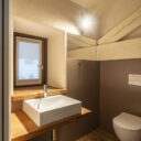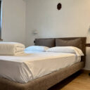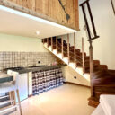 Cet agréable appartement de deux pièces sur deux niveaux, réalisé en bois précieux ancien alternant avec des matériaux modernes, avec des portes en panneaux également anciens, est conçu pour accueillir des couples avec un lit double sur la mezzanine.