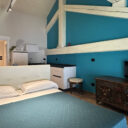 Il s'agit de notre suite mansardée, spacieuse et très lumineuse, avec une belle fenêtre donnant sur les jardins potagers et une petite terrasse orientée au sud.