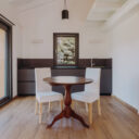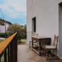 Appartement construit dans un bâtiment rural des années 1960. Meublé avec quelques meubles anciens de famille, il dispose d'une cuisine moderne et de deux terrasses : l'une orientée au nord et l'autre au sud, ainsi que d'une fenêtre donnant sur nos potagers.
